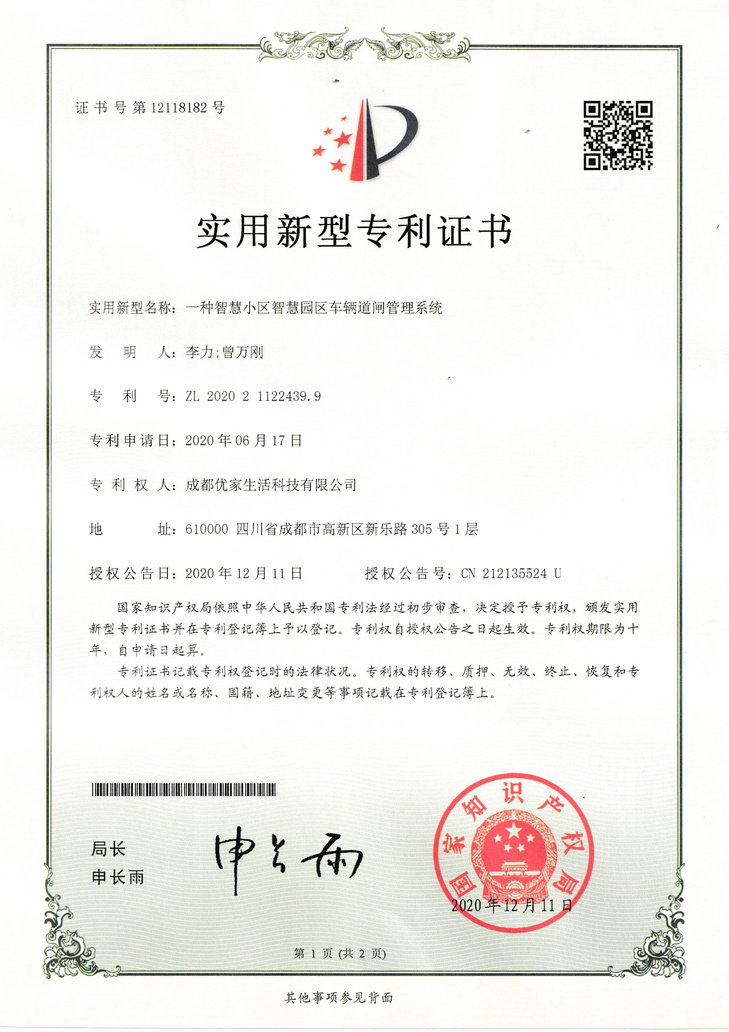 優(yōu)家生活“一種智能社區(qū)巡邏檢查系統(tǒng)”獲得實(shí)用新型專利