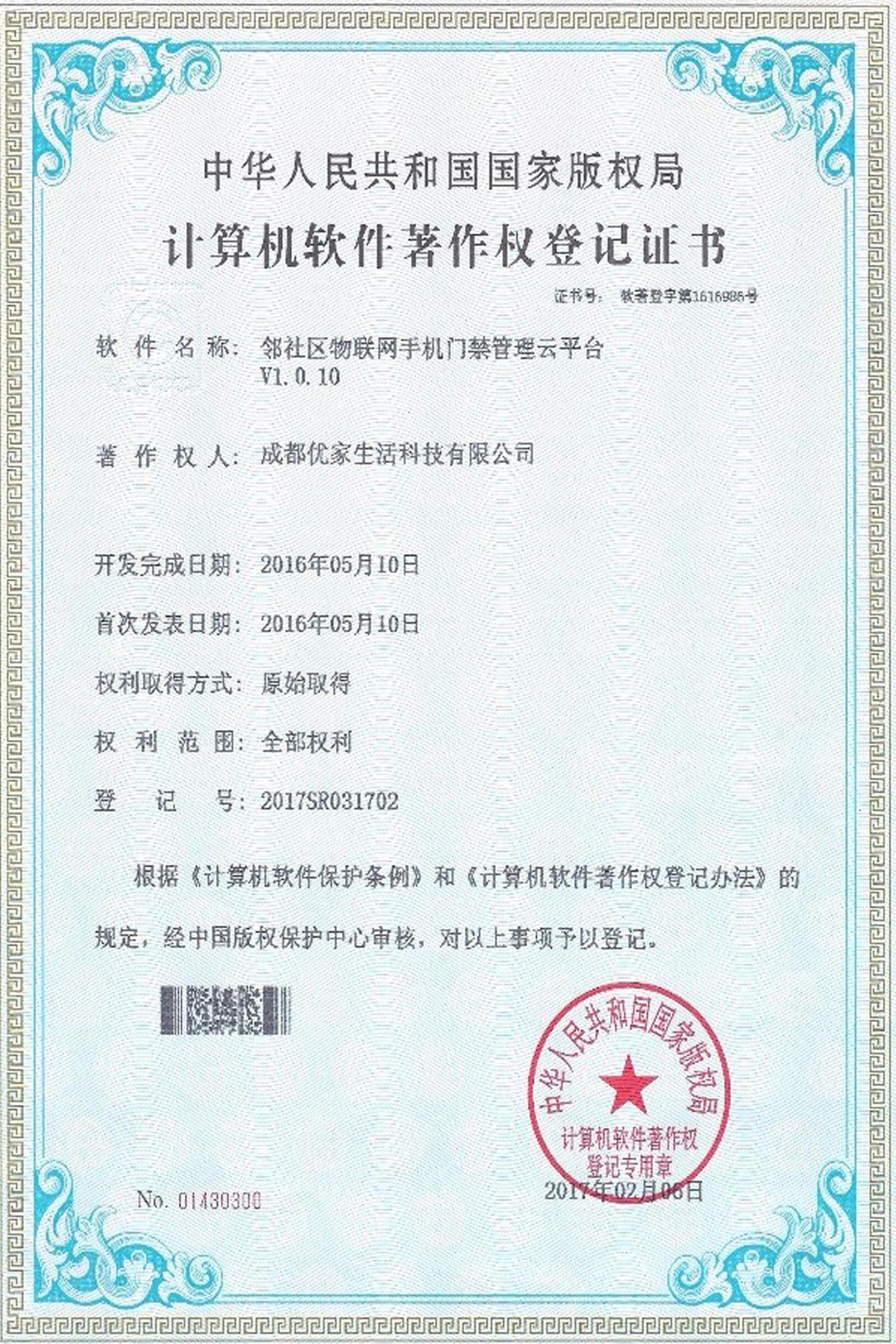 公司產(chǎn)品“優(yōu)家生活鄰社區(qū)訪客安全云管理系統(tǒng)”獲得軟件著作權(quán)
